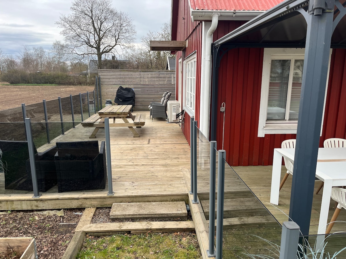 Newly renovated/new layout for the living room and dining area. A second external door has been fitted that gives direct access to the rear private decking area. Good location ie Göteborg 140km. Malmö 105km Copenhagen 124kms. We have teamed up with a renowned local artist and we are displaying/selling some of her artwork. Set in a small quiet village. The apartment is completely seperate from the main house. Most who stay here say it's been super quiet + calm. Good WiFi Chrome cast