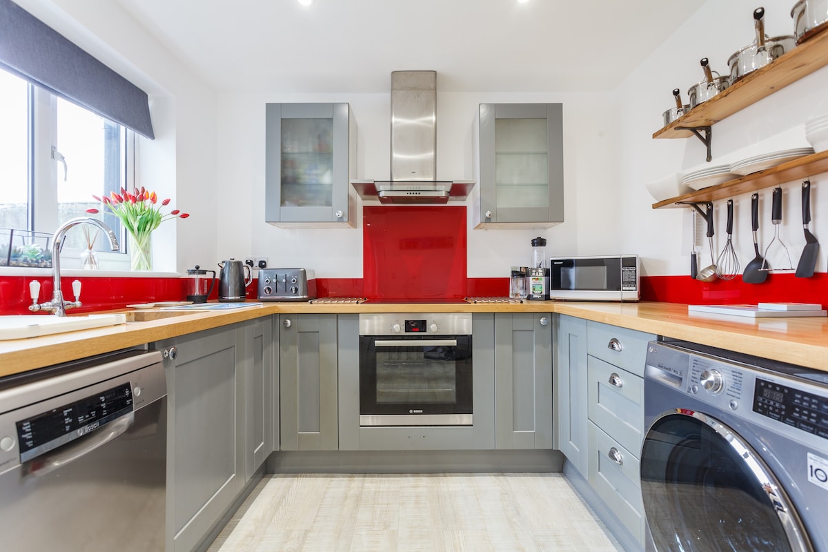 침실 1개, 취사 가능 숙소, 주차장. 주방에는 오븐, 전자레인지, 냉장고/냉동고, 식기 세척기가 있습니다. 차, 커피, 설탕, 소금, 후추, 기름이 제공됩니다. 중앙 난방 시설 완비 산뜻한 흰색 침구와 푹신한 수건이 있는 매우 편안한 더블 하이프노스 침대가 있습니다. 습실에는 바닥 난방 시설과 열선 수건 걸이가 있습니다. 테이블과 의자가 갖춰진 전용 안뜰도 마련되어 있습니다. 여행용 아기 침대는 1박당 15파운드의 추가 요금으로 요청 시 이용 가능합니다. 최소 2박