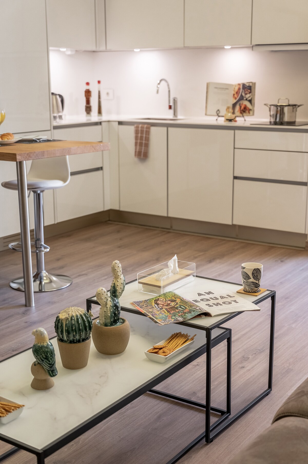 힙한 레스토랑 바, 부티크, 아트 갤러리가 있는 마르 미카엘의 활기찬 동네에 위치하고 있습니다. 이 아파트는 안전하고 조용한 건물에 있으며 현대적이고 아늑하며 편안합니다. 식료품을 배달하거나 바로 근처에 있는 그랩 앤 고로로 걸어가세요. 도보로 15분 거리에 수르속 박물관이 있습니다. 도보 거리 내에 칼레이, 술 카페, 수크 엘 타예브가 있습니다. 고속도로에 쉽게 접근할 수 있습니다. 바다로까지 차로 5분, 바닷가 산책을 즐길 수 있는 바닷가 경기장까지 8분 거리입니다.