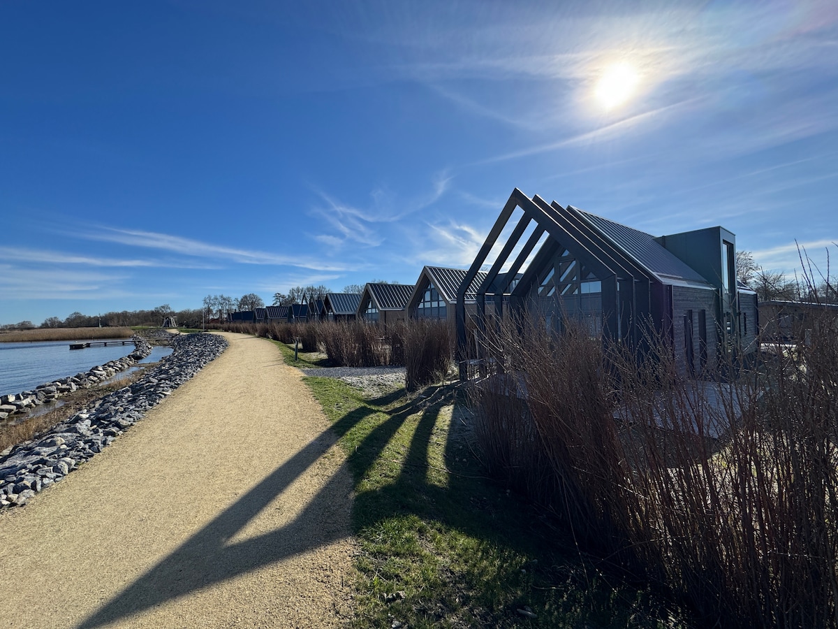 IJsselmeer 해변의 햇살 가득한 바닷가 주택
