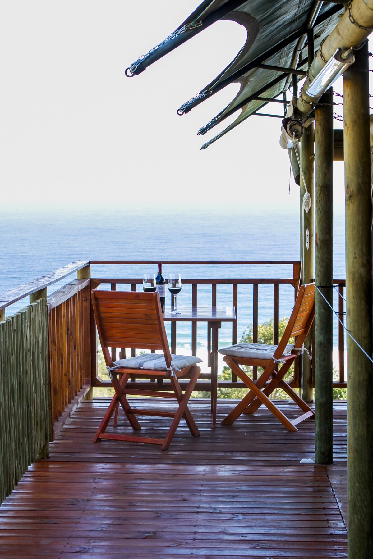 Situated within a Bird Sanctuary, inside the Wilderness Bushcamp, this cottage offers what we consider the best views in the Wilderness. 75 square meter interior and 25 square meter deck makes this the perfect location for two couples or a family. The cottage is situated in 9 hectares of indigenous forest with uninterrupted views of the ocean and lakes. A perfect place to relax and unwind.