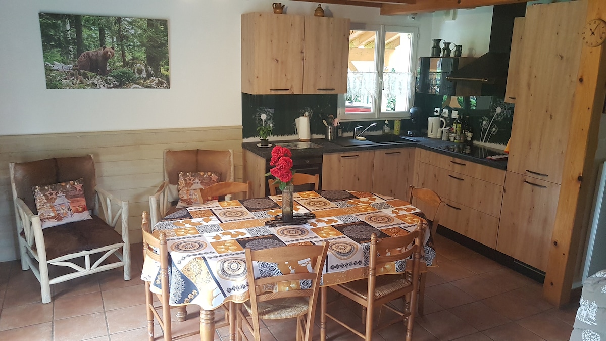 안녕하세요! 피레네 산맥의 전망을 즐길 수 있는 진정한 솔리드 우드 샬레를 즐기실 수 있습니다. 넓은 울타리 마당, 놀이 공간(축구, 라켓, 페탕크, 수영장, 자쿠지, 탁구 등), 조용하고 편안한 분위기, 인근의 하이킹 코스... 친구, 커플, 가족 여행객(자녀 동반)에게 안성맞춤입니다. 파티와 이브닝 파티는 허용되지 않습니다.
