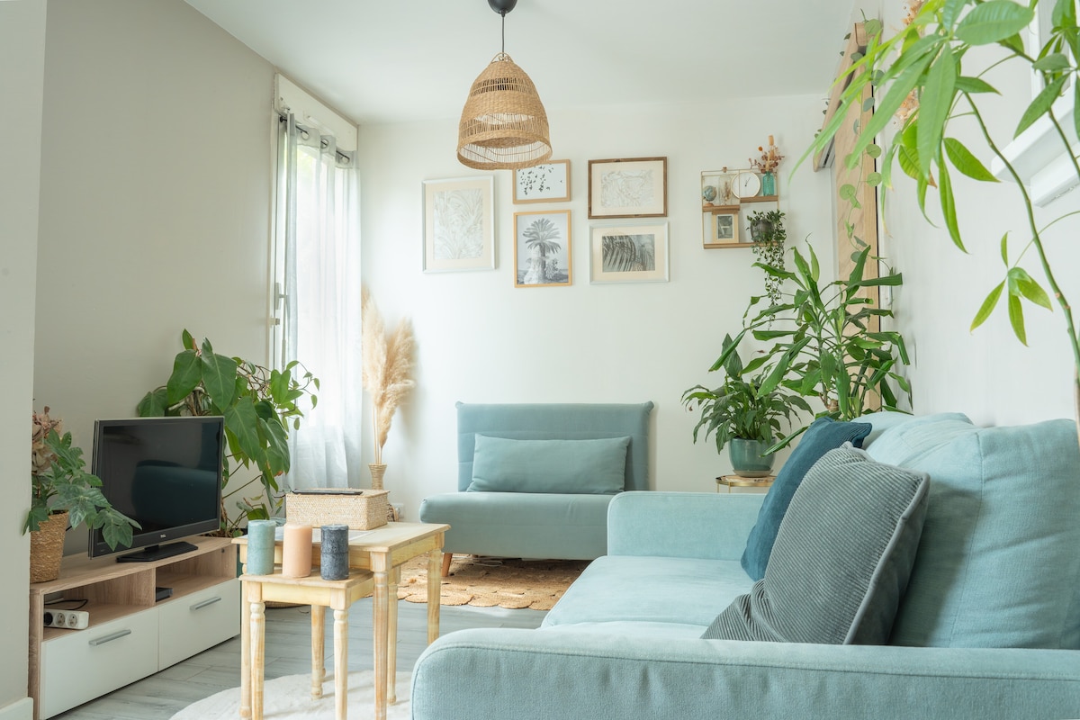 T2 55m² rénové avec jardin.Calme. TV Wifi. Parking