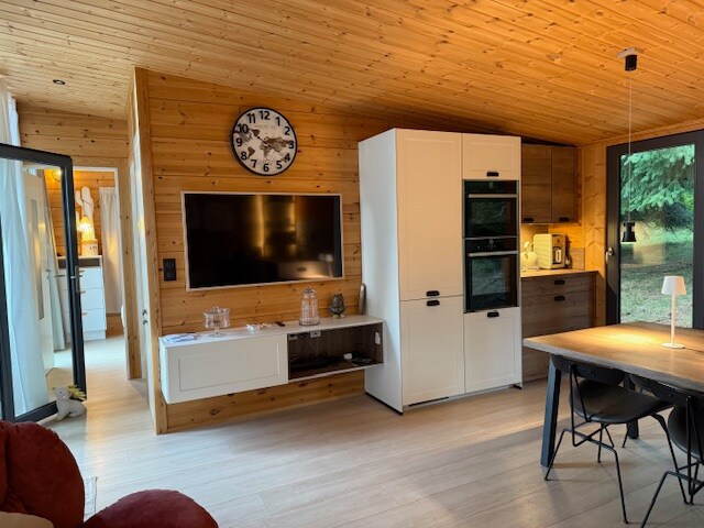 아기를 포함하여 5인용 숙소. 가족, 친구, 커플을 위한 수영장과 전용 온수 욕조를 갖춘 46m² 규모의 목조 샬레입니다. 사우나는 예약 시 이용하실 수 있습니다. 침실 2개: 커플용 침실 1개, 이층 침대가 있어 어린이 3명 또는 두 번째 커플이 사용할 수 있는 침실 1개. 거실로 연결되는 시설이 완비된 주방에서 즐거운 시간을 보내실 수 있습니다. 넷플릭스와 운하 +, 영화의 밤. 온수 수영장은 6월부터 9월까지 이용 가능하며 연중 내내 운영됩니다.