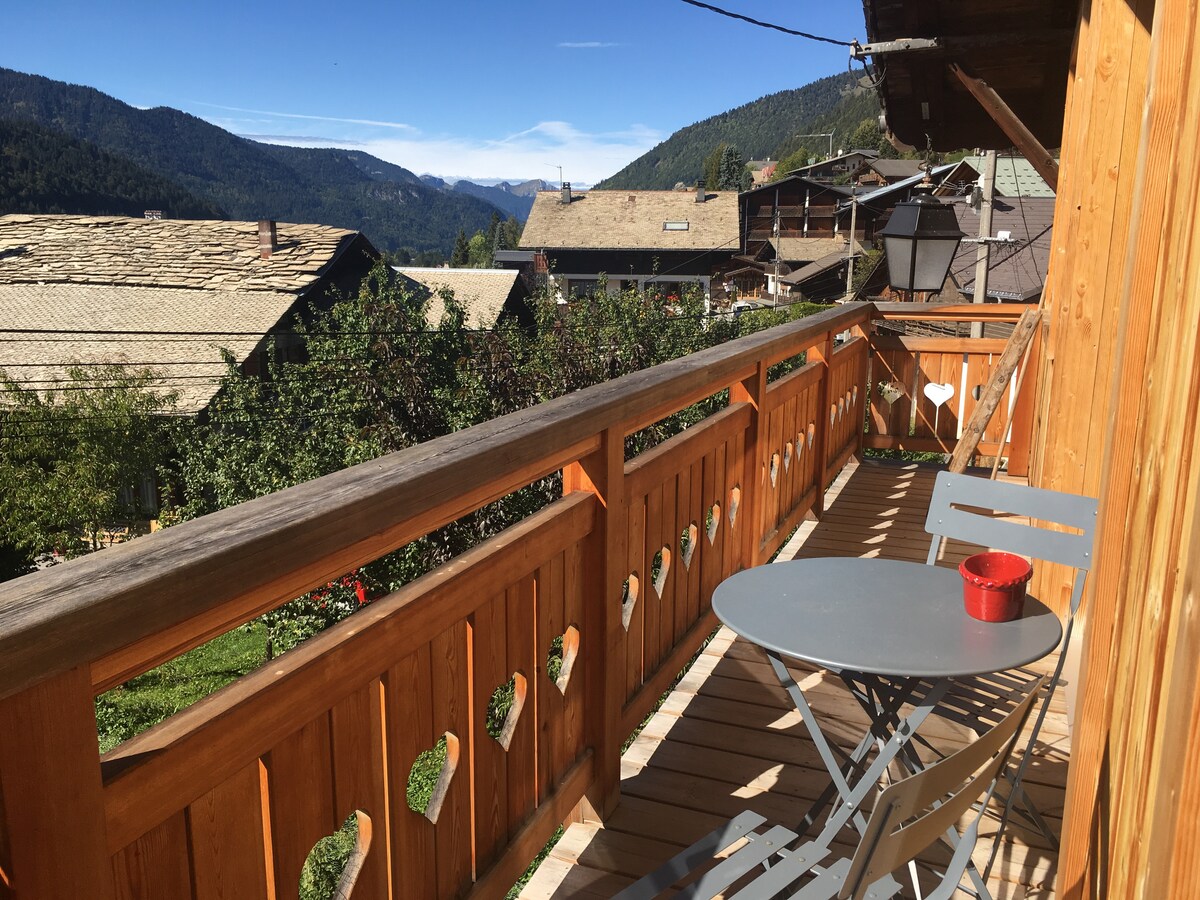 ancienne grange rénové en un appartement en duplex de 100m2 mélangeant l'ancien et le moderne ,situé dans le quartier historique de Morzine,face au piste de ski du pleney . le centre ville ce trouve a 5 min a pied de appartement Un arrêt de navette gratuite ce trouve en bas de l’appartement elles desservent le centre ville ainsi que les pistes de ski pas besoin de voiture.