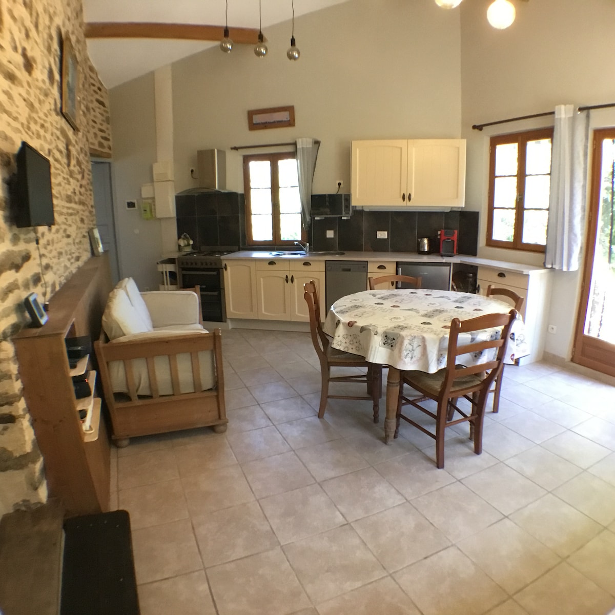 17세기로 거슬러 올라가면 노출된 대들보와 돌, 대형 벽난로, 내부 빵 오븐이 있는 주방 등 과거의 분위기에 매료될 것입니다. 하지만 중앙 난방과 와이파이 등으로 편안하게 생활할 수 있도록 개조된 전원주택입니다.