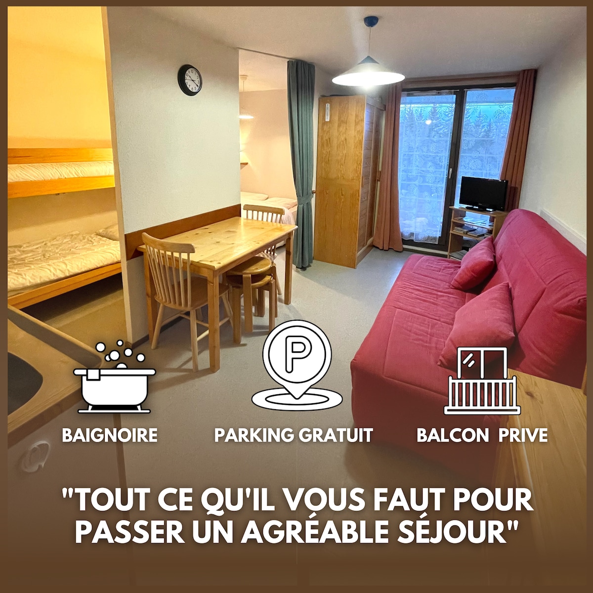 Studio de 27 m2, avec canapé convertible et lits superposés dans résidence calme avec parking gratuit et déneigé. Situé au cœur de Bois d'Amont, charmant village de la station des Rousses, à proximité immédiate des commerces et du départ des pistes de ski de fond. La résidence ce trouve à 50 mètres de l'office du tourisme, des navettes de Skibus et à 100 mètres du musée de la Boissellerie. Le studio situé au 2ème étage possède un petit balcon. Non fumeur. Les animaux ne sont pas acceptés.