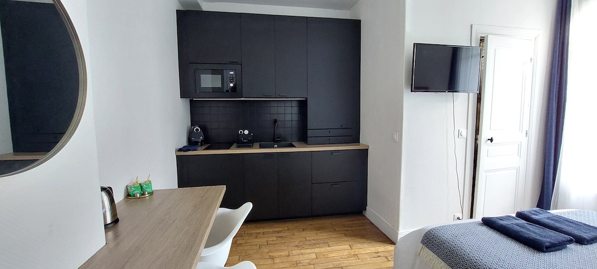 Welcome to this beautiful, brand-new apartment, nestled in a peaceful residential neighborhood, perfect for a relaxing getaway near Paris. This modern retreat features a fully equipped open kitchen and a bright living room with a comfortable sofa bed and a smart TV. The bedroom, with a high-quality double bed, ensures restful nights, while the spacious bathroom offers a relaxing space after your days of exploration.