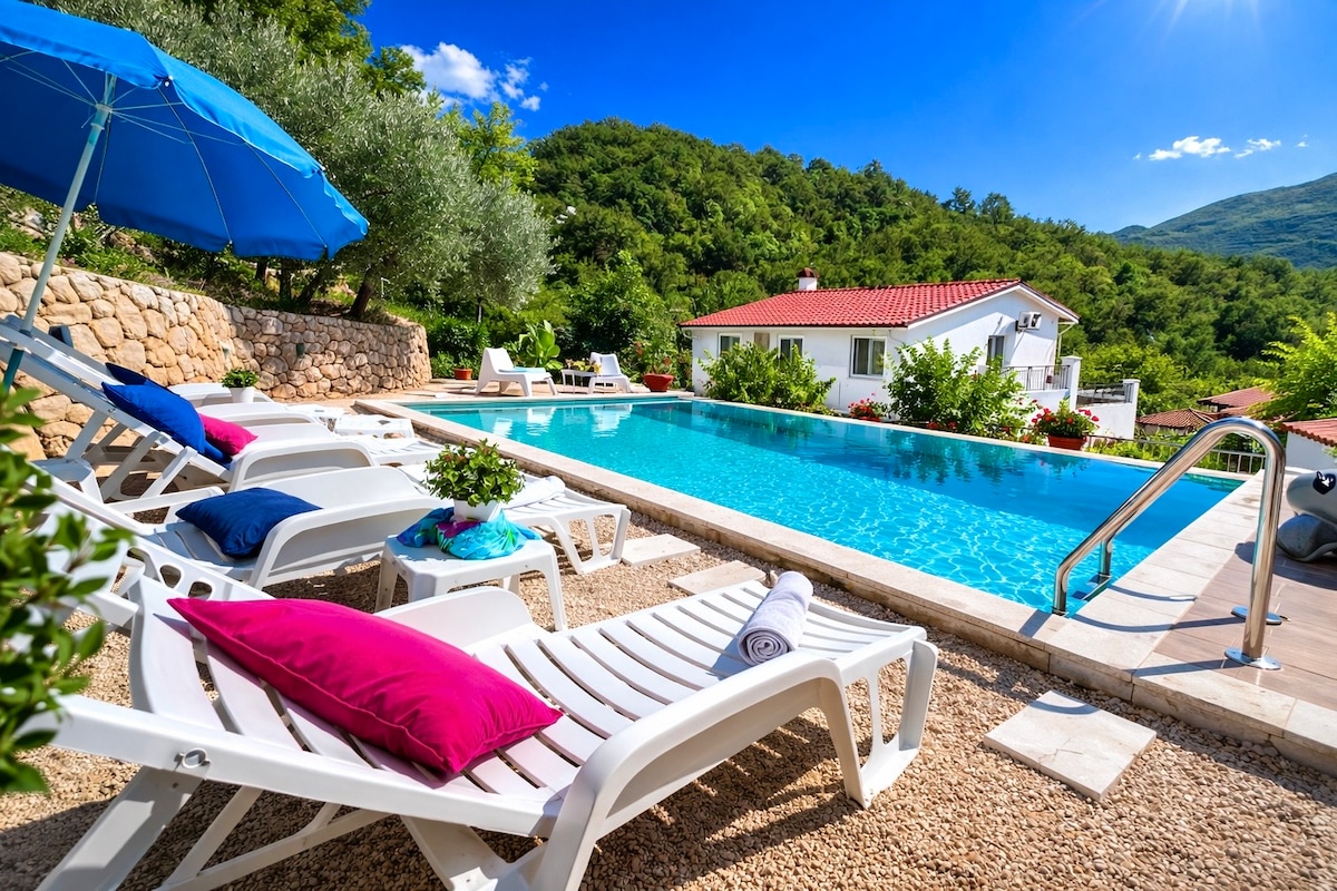 Escape to this charming villa in Tivat, Lustica Peninsula, perfect for a peaceful retreat. 🌿 Tranquil Location – Enjoy peace and privacy, just a 5-minute walk to the sea. 🏊 Private Pool – Relax and unwind in your own swimming pool. 🍽 Outdoor Kitchen & BBQ – Cook and dine al fresco in the fresh air. 🌅 Balcony & Terrace – Take in stunning views and unwind in comfort. Ideal for families, couples, or friends looking to enjoy nature, privacy, and relaxation in Montenegro. Book your stay today!.