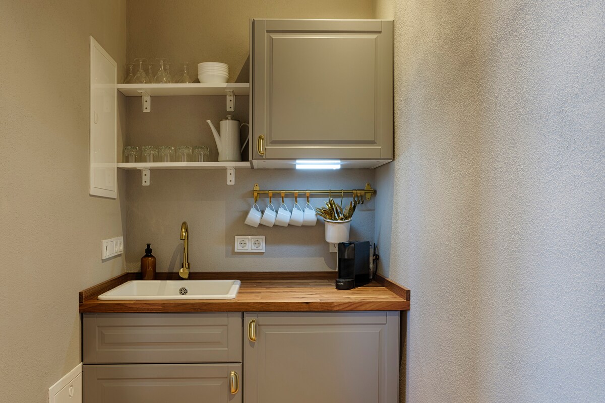 이 아파트는 독일 홀리치 (Hollrich) 의 작은 마을에 있는 1565년에 지어진 부분적으로 개조된 물 성에 있습니다. 주방과 욕실이 있는 사랑스럽게 꾸며진 침실 2개로 구성되어 있습니다. 교차 금고, 아름답게 꾸며진 석조 기둥, 새로 설치된 단단한 참나무 바닥이 있는 한 방에 머물며 쾌적하게 따뜻한 분위기를 느낄 수 있습니다. 전망은 마당과 해자를 볼 수 있습니다. 51인치 두께의 벽에 옷장이 설치되어 있습니다.