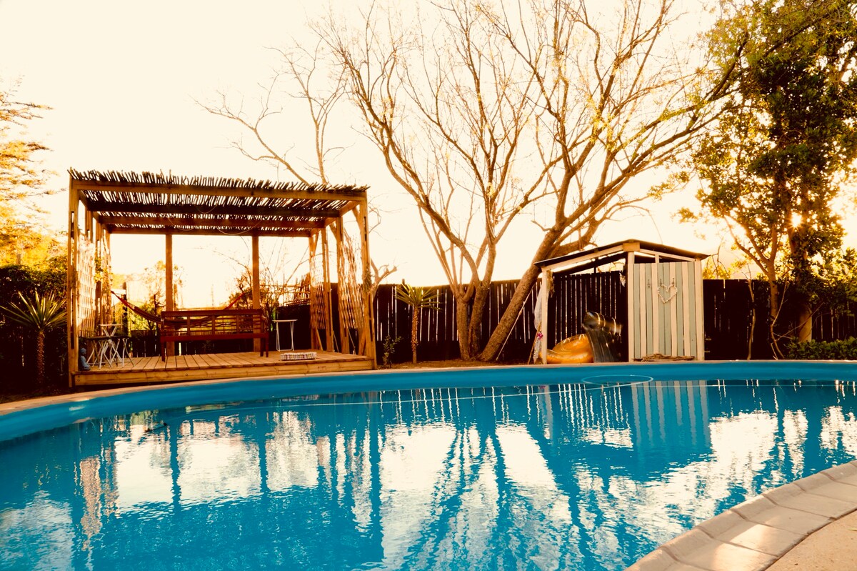 Birdsong Barrydale is a unique self catering hideaway in the heart of the Klein Karoo. Wake up to the chattering of weavers outside your window and enjoy a cup of locally roasted coffee in your own private garden. Only a stone's throw away from some of the most picturesque hiking trails in the Karoo and within walking distance of restaurants, shops and the town centre. Kick off your shoes and enjoy easy country living right here in the heart of paradise.