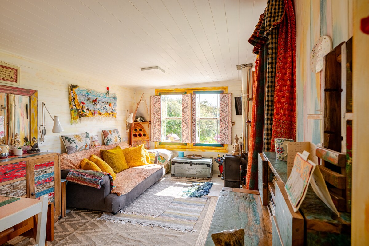 A beautiful bohemian /romantic Self contained space in our garden for two . Beautiful textiles and vibrant colours , which is reflected from my love of travel to India, Asia and the Caribbean , sunny garden space with barbecue , table and chairs for relaxing . Private access to a beautiful beach Perfect for a romantic getaway tea /coffee/ Light breakfast Evening food options MUST LOVE CATS we have pudding and Percy our beautiful exotics and Basil our adorable Havamalt
