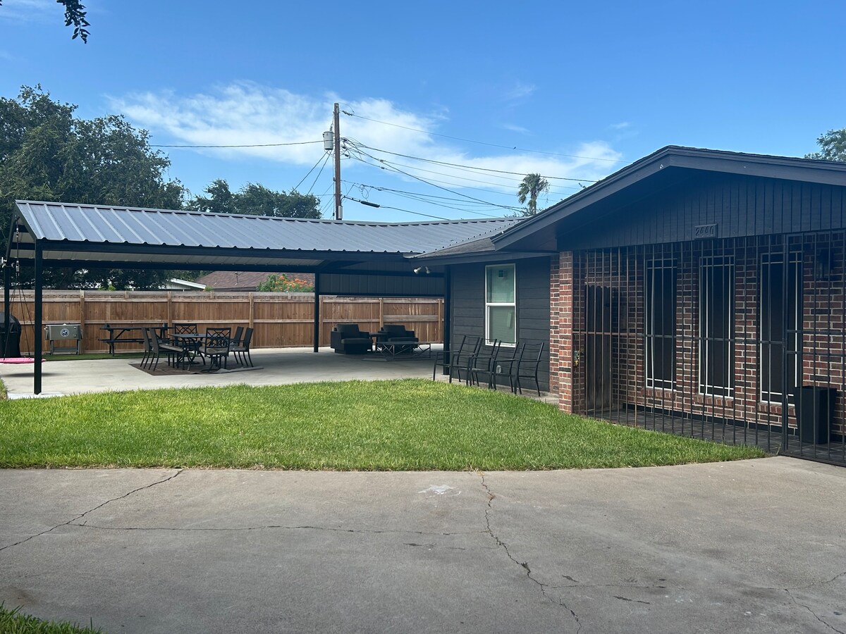 차분하면서도 스타일이 살아 있는 숙소에서 편안한 휴식을 즐기세요. 매우 아늑한 침실 3개와 욕실 2개를 갖춘 숙소입니다. 샤워실 1개, 욕조 샤워실 1개. 마스터 침실에는 킹사이즈 침대가 있고 다른 침실에는 퀸사이즈 침대 2개가 있습니다. 모든 방에는 TV가 있습니다. 마스터 및 거실의 큰 화면으로 최고의 영화를 감상할 수 있습니다. 풀사이즈 주방에서 식사 준비를 할 수 있습니다. 이 아름답지만 더운 RGV 날씨에 차량을 햇빛으로부터 보호할 수 있는 차량 2대용 차고가 있습니다. 재미있는 큰 뒷마당.