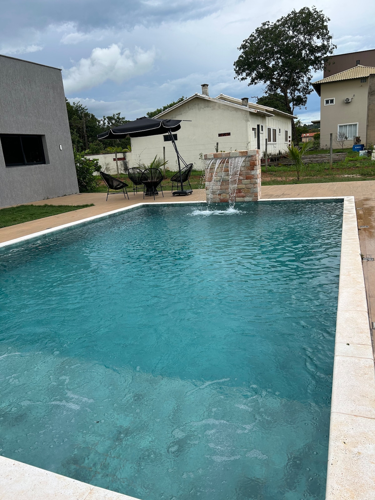 A casa fica em um condomínio fechado (zona rural) na cidade de Hidrolândia região metropolitana de Goiânia. Relaxe com toda a família nesta acomodação tranquila. A casa possui 4 suítes, 8 camas, acomoda até 12 pessoas.