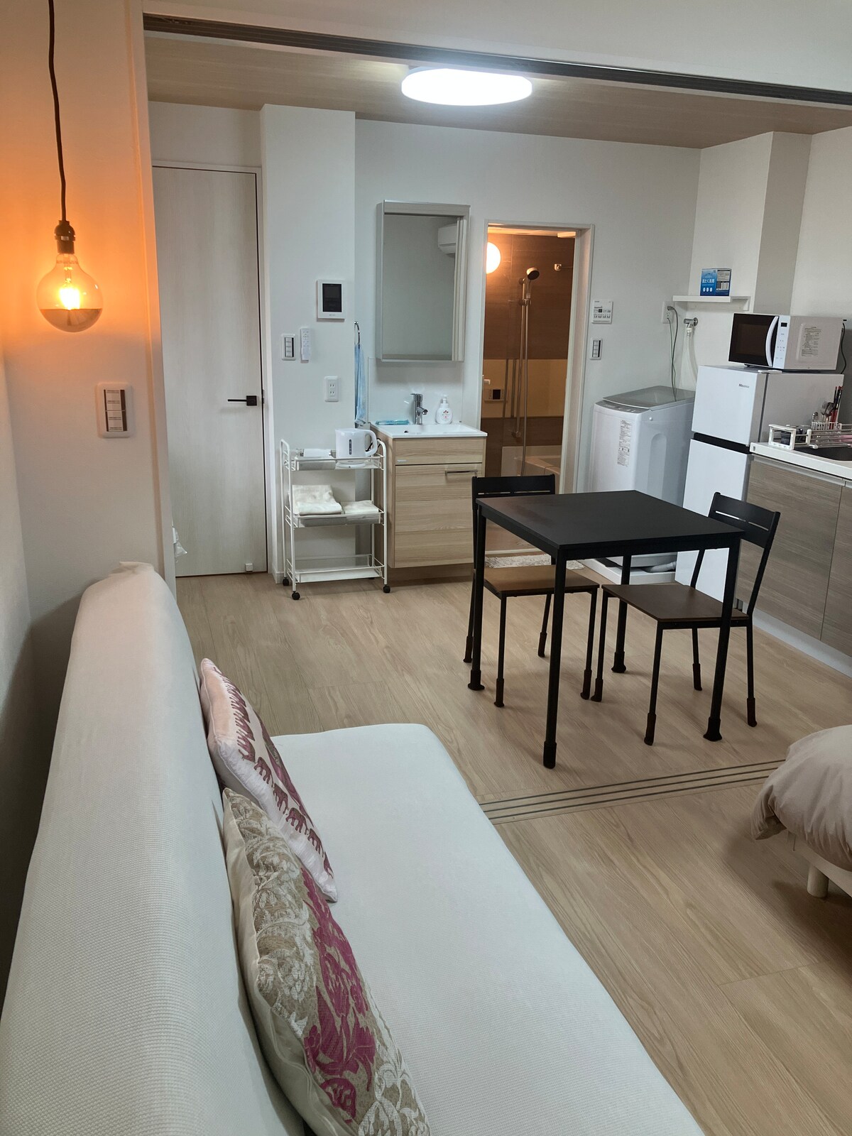 2024년에 새로 지어진 아파트의 게스트룸입니다.건물은 JR 기치조지역에서 도보로 14분 거리에 있습니다.신주쿠역은 기차로 3정거장 거리에 있습니다.시부야역도 기차로 5정거장 거리에 있어 접근성이 매우 좋습니다.가족 및 친구를 위한 새로운 게스트하우스는 30㎡이며 주방, 욕실(욕조 포함), 거실 및 침실을 갖추고 있습니다. "가족과 친구들이 기분좋은 집" 을 컨셉으로 최신 가구와 가전제품 (TV, 냉장고, 전자레인지, 세탁기, 건조기, 청소기, 헤어드라이어 등) 이 완비된 넓은 공간으로 여행객들이 오래 머물면서 내 집처럼 편안하게 지낼 수 있는 공간을 제공하고 있습니다. 최신 초고속 와이파이도 구비되어 있어 워크케이션으로 활용할 수 있습니다.역 근처에 있는 숙소이지만 "자연스럽고 편안한 공기" 를 제공합니다. 근처 기치조지 쇼핑거리에서는 옛 일본의 활기찬 분위기를 즐길 수 있습니다.신주쿠, 시부야, 하라주쿠는 쉽게 접근할 수 있지만, 밤에는 조용한 환경에서 가족, 친구들과 함께 시간을 보낼 수 있습니다.