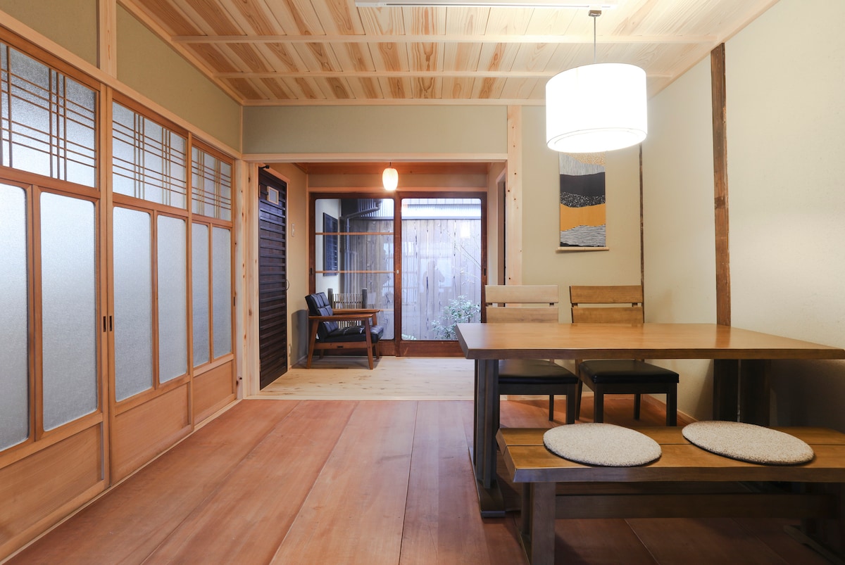 Beautifully authentic restored "Kyo-Machiya" that has been converted into the licensed accommodation. While it retains some classic Kyoto exteriors and interiors, Western comforts like beds, kitchenette, dining table and chairs are also well furnished. Machiya stay offers you the rare chance to experience traditional Japanese living without sacrificing your comfort. Enjoy your trip, by feeling the atmosphere of Kyoto's lifestyle! *Free rental cycle service has been finished on 12/31/2023.