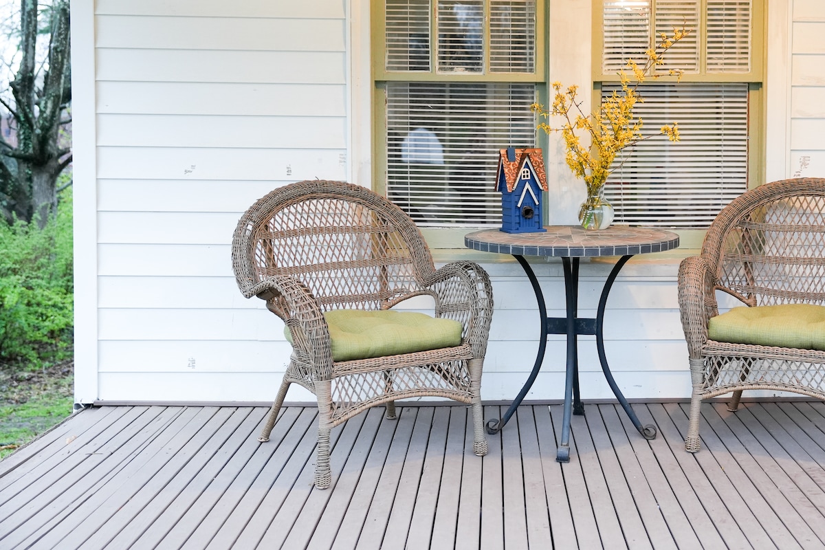 This cozy, well decorated, ground level suite in the downtown historic emerywood neighborhood offers many amenities with parking just a few steps from the front door. Close to downtown, 1 block to the hospital, High Point Medical Center, 3 mins to Rocker Stadium & Center. The en-suite offers a well equipped kitchenette & bathrm along with a cush queen sized bed & 50 inch TV. Guests have sole use of the front porch entryway w/comfortable wicker chairs and cafe table. We have affordable rates!