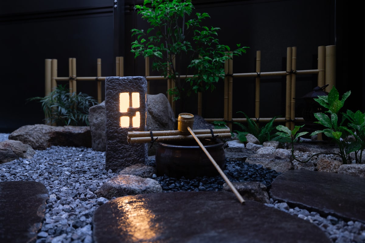 "게스트하우스 신"은 미야마의 마치야도리에서 한 거리에 위치하고 있습니다. 입구 커튼을 지나면 교토 텐야를 연상시키는 세련된 대나무 벽이 반갑게 맞이하며, 돌길이 안뜰로 이어집니다.안뜰에는 흰색 대리석과 이끼가 멋지게 어우러져 있어 차분한 분위기를 자아냅니다.유리문이 배치되어 있어 거실에서 안뜰이 보입니다. 건물은 정원을 통해 게스트만 출입할 수 있으므로 누구에 대해서도 걱정할 필요가 없습니다.외관은 평범한 개인 주택처럼 보이지만, 일단 들어서면 분위기가 바뀌는데, 그게 이 여관이 매력적인 이유입니다.이전 소유주는 정원 가꾸기에 대한 오랜 열정을 가지고 있었고 다양한 취미를 가지고 있다고 들었습니다.하지만 처음에 말씀드렸듯이 여관을 시작할 생각은 없었기 때문에 목욕 시설이 없습니다(샤워실 있음).하지만 근처 여관을 야외 목욕탕으로 이용하실 수 있습니다.1층은 거실이며, 2층에는 침실로 사용되는 일본식 방이 2개 붙어 있어 최대 6명이 편안하게 머물 수 있습니다. 안뜰에는 이끼로 둘러싸인 흰 돌로 단어가 쓰여 있습니다.과거에 장난스러운 정신을 가진 정원사가 만든 것으로, 여관의 이름의 기원입니다.그들은 모든 마음으로 게스트를 맞이하고 게스트가 편안한 시간을 보내기를 바랍니다.