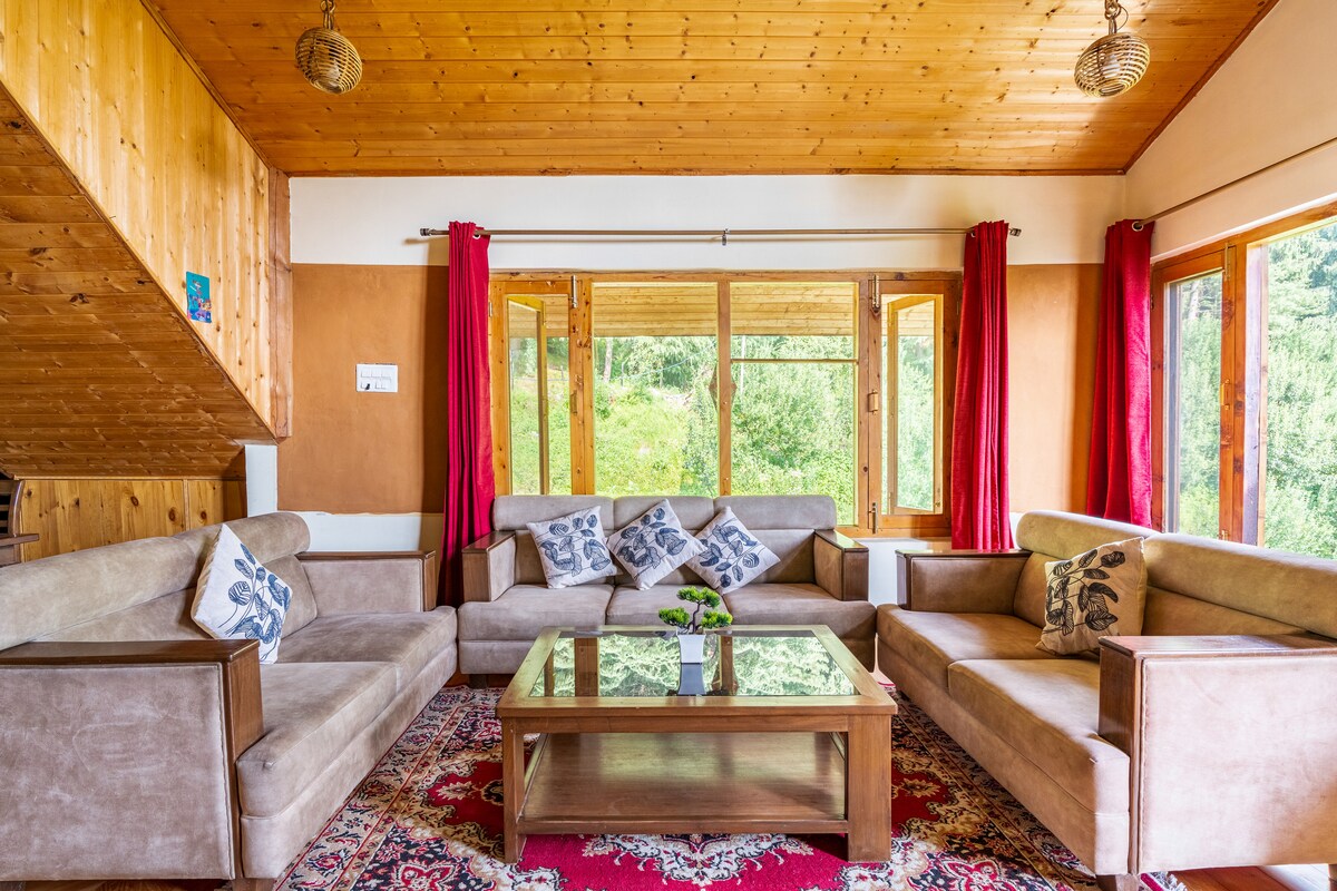 Tastefully made luxurious house in the peaceful lap of nature. Wooden interiors with modern touch give an essence of Himalayas and comfort of home. "Work from mountains" with high Speed Wifi. Built in functional fireplace that can be fired while you sip your coffee and enjoy the nature around. Attractions: Shilly wild life sanctuary Mohan heritage Park Monastry 8 min walk to Solan mrkt Shimla, Kasauli, Chandigarh , Chail - All in radius of 40-50Km Local restaurants deliver food at door!