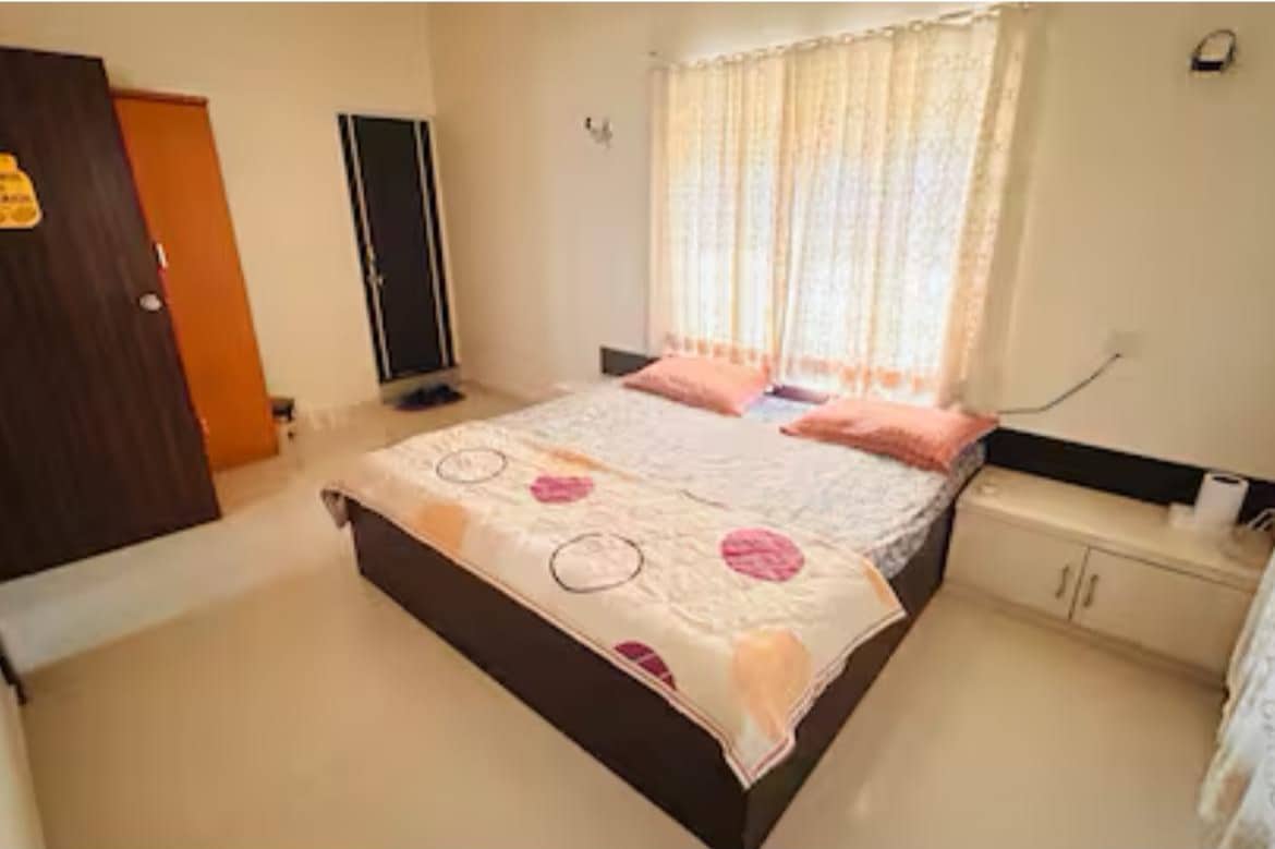 별채 3bhk 전체입니다 모든 OTT를 이용할 수 있는 43인치 LED TV, 3개의 객실의 에어컨, 와이파이, 냉장고, 홀 공간의 소파, 식탁, 조리도구가 완비된 주방이 있습니다. 숙소에 아름다운 정원이 있습니다 😊👍🏻 넓고 평온한 숙소에 머물면서 걱정과 근심을 잊어보세요. 녹지로 둘러싸인 큰 크기의 객실이 있는 3bhk 방갈로 전체이며 정원도 이용하실 수 있습니다.