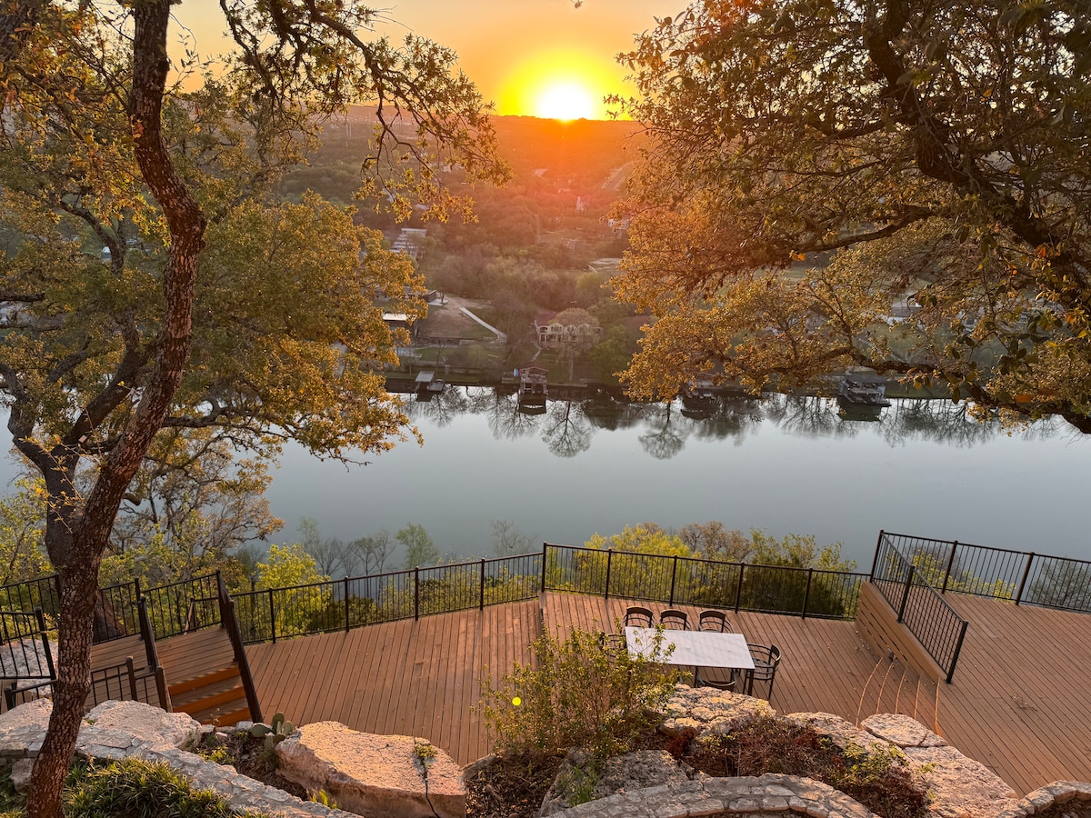 카우보이 수영장, 울타리가 있는 마당, 파노라마 전망을 자랑하는 트래비스 호수의 세련된 휴양지로✨ 떠나보세요. 최대 4명의 게스트를 수용할 수 있는 이 숙소는 킹사이즈 및 퀸사이즈 침실, 2.5개의 욕실, 바이킹 가전제품과 현지 간식이 완비된 주방, 이탈리아 에스프레소 머신을 갖추고 있습니다. 해먹에서 휴식을 취하거나, 파티오에서 그릴을 즐기거나, 호수까지 산책하며 수영과 일몰을 즐겨보세요. 히피 할로우, 오아시스, 오스틴 관광지와 가깝습니다. 반려동물 동반 가능!