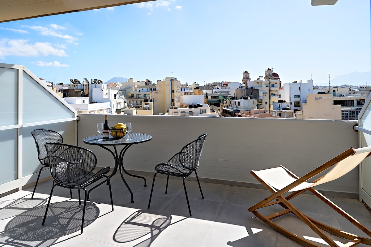 A luminous, peaceful, carefully decorated and recently renovated apartment. A large veranda that offers lots off sun and wonderful view to the city the mountains and the sea for unforgettable sunsets, resting in a beautiful and comfortable hammock!!! It is located in the heart of Heraklion, on a beautiful pedestrian street, 50m away from the famous Lion's square and a 5 minutes walk to museums and bus stops offering connections to the airport,to the beaches and to Knossos palace.