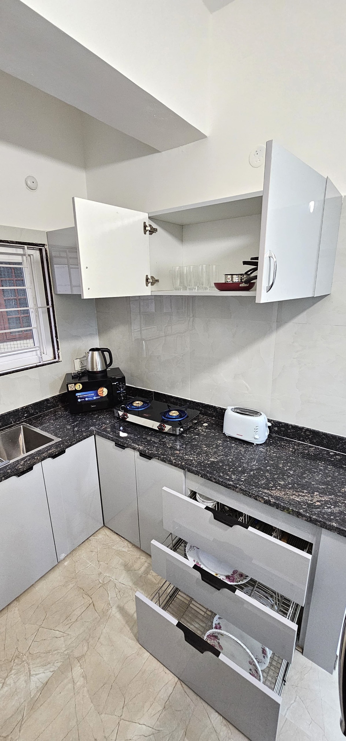 가방을 내려놓고 디지털 키패드를 눌러 안전하게 셀프 체크인하고 프라이버시를 완전히 보호하세요. 전용 1BHK에서 냉장고에서 시원한 물을 마시고, 대형 스크린 프로젝터로 영화를 보며 휴식을 취하고, 팝콘을 만들어보세요. 저녁 식사를 요리하거나 주문하세요. 호텔 스타일의 푹신한 침대에서 에어컨이 설치된 침실에서 편안하게 주무세요. 아침에 차나 커피를 내리고, 온수기를 켜고, 햇살 가득한 발코니에서 음료를 즐겨보세요. 샤워를 즐기세요. 빠른 와이파이, 인체공학적 업무용 책상, 전원 백업이 포함되어 있습니다. 넥서스 몰 근처.