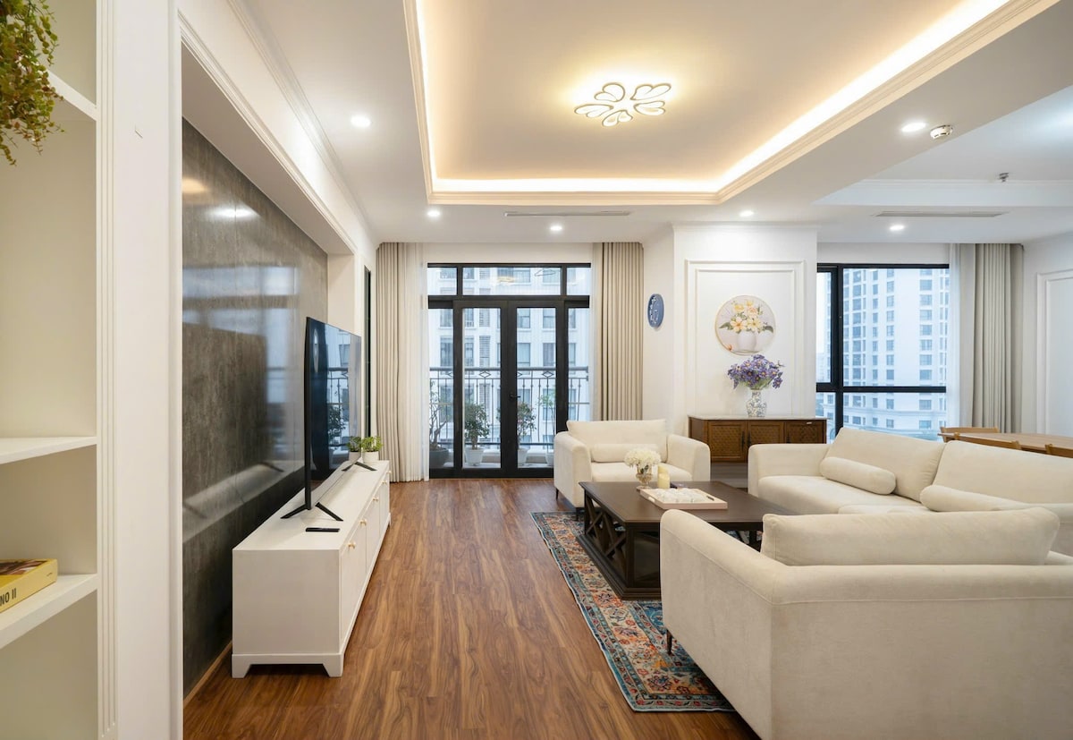 이 숙소는 현대적이고 고급스러운 가구가 완비된 침실 3개짜리 아파트로, 가족 또는 6~10명의 그룹에 적합하며, 베트남 하노이 탄쑤언(Nguyen Trai) 거리 72A에 위치한 빈홈즈 로열 시티에 있습니다. 여러 명이 편안하게 머물 수 있는 넓은 공간과 독특한 개성을 자랑하는 숙소입니다. 매우 넓음: 175m2