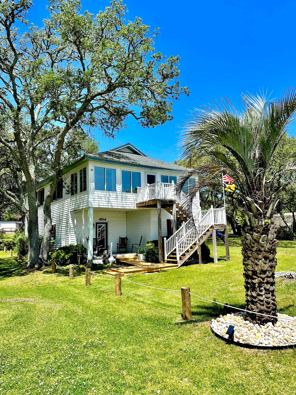 Keep It Reel is a classic Holden Beach cottage, fully renovated in 2025. Steps from the Intracoastal and a 5-min walk to private beach access, it blends nostalgia with bright, modern comfort. Vaulted ceilings, marsh views, a hotel-style master suite with private bath, a second bedroom next to a hallway bath with washer/dryer, and cozy living spaces make it perfect for families or friends. Outdoor shower, hammock, grill, yard games, and beach gear includedโlive like a local, relax like a guest.