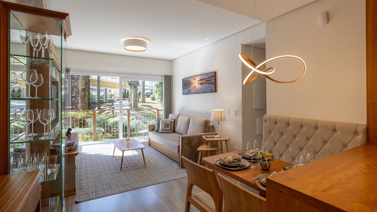 -----VOCÊ VAI SE ENCANTAR!----- Novinho e c/ uma decoração impecável. 1 suíte; Sala c/ sofá-cama; Wi-fi; Ar condicionado; Lareira; Cozinha completa c/ eletrodomésticos; Churrasqueira; Piscina térmica coberta; Sala de jogos; Playground; Vaga de garagem; Sacada c/ linda vista. -------EXCELENTE LOCALIZAÇÃO------- 200m do Super Carros/ 400m Exceed Games/ 800m Museu do Automóvel/ 4min Mundo a Vapor/ 7min Centro de Gramado/ 7min Mini Mundo/ 8min Centro de Canela