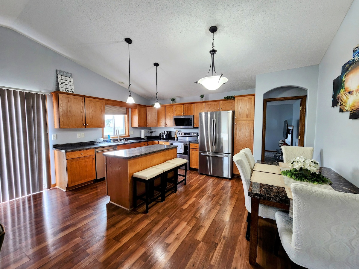 내 집처럼 편안한 숙소에 오신 것을 환영합니다! 이 넓은 침실 4개, 욕실 3개가 있는 램블러는 아치형 천장과 스타일, 편안함을 조화시킵니다. 쿼츠 카운터가 있는 멋진 주방. 메인 스위트에는 킹사이즈 침대와 워크인 옷장이 있습니다. 편리함을 즐겨보세요! 아래층에는 영화의 밤, 재미, 게임 공간에 완벽한 거대한 패밀리 룸이 있습니다. 두 개의 아늑한 침실이 초대형 드레스룸과 함께 기다리고 있습니다. 울타리가 있는 뒷마당으로 나가 데크, 파티오, 벽난로가 있는 오아시스를 만나보세요. 이 지역은 즐길 준비가 되어 있습니다.