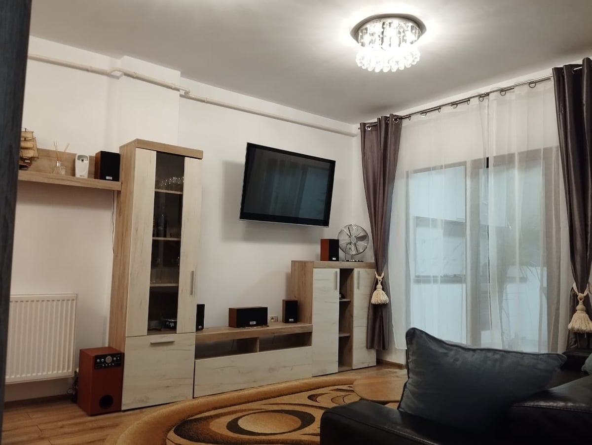 ✨ 넓은 객실 2개가 있는 현대적인 아파트로 2~4명이 지내기에 적합합니다. 시설이 완비된 주방과 🛋 소파 베드가 있는 개방형 거실과 편안한 별도의 침실이 있습니다. 🚋 건물 뒤편에 있는 트램 정류장에서 도심으로 빠르게 이동할 수 있습니다. ✈️ 이아시 공항에서 가깝고 🛍 율리우스 몰 및 🏛 팔라스 몰 근처에 편리하게 위치하고 있습니다. 📺 스마트 TV, 📶 빠른 와이파이, 휴식이나 업무를 위한 환영하는 분위기. 유연하게 이용할 수 있는🔑 셀프 체크인