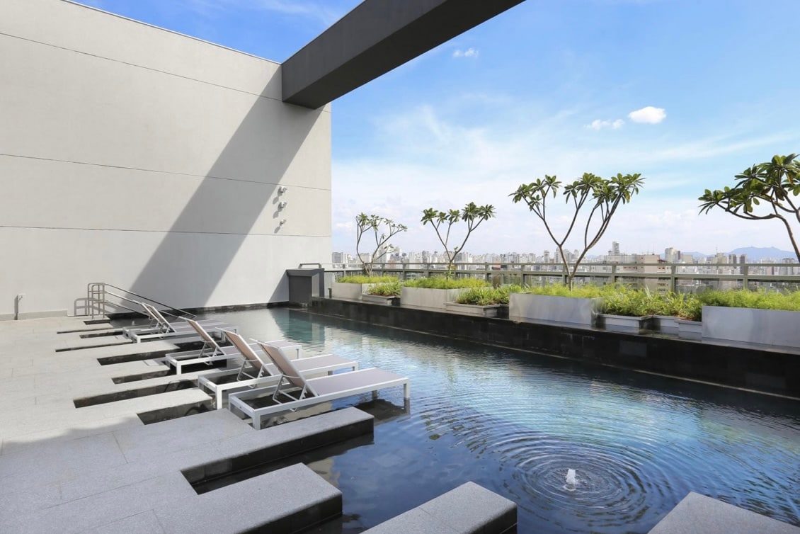 상파울루 스튜디오. 수영장이 있는 고층 아파트.