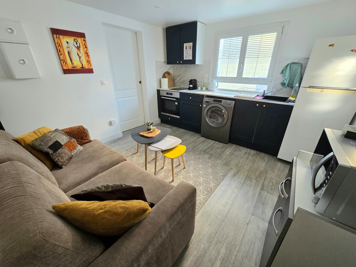 녹색 교외 동네의 메종 라피트 공원 가장자리에 위치한 작고 조용한 숙소로 마구간과 숲 근처에 있지만 상점과 기차역(기차로 파리에서 20분 거리) 근처에도 있습니다. 정원, 바비큐, 탁구대, 자전거, 야외 어린이 게임을 이용하실 수 있습니다. 지붕이 있고 안전한 박스에 무료 주차, 광섬유 연결이 가능한 책상, TV, DVD 플레이어, 넷플릭스가 제공됩니다. 전문가 및 레저 숙박에 적합합니다.