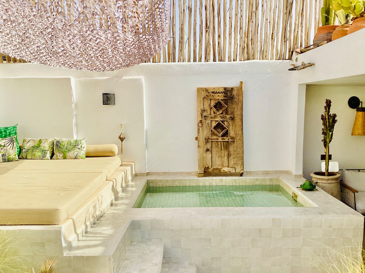 미국 건축가가 자신의 ✨ 집이자 아트 스튜디오로 사랑스럽게 복원한 15세기 리아드인 다르 라라에✨ 오신 것을 환영합니다! 다르 라라를 단독으로 사용하실 수 있습니다. 다른 게스트와 공간을 공유하지 않습니다. 🥰✨ 리아드에는 침실 2개, 옥상 테라스, 광섬유 와이파이, 개조된 욕실, 메모리폼 침대, 조식이 포함되어 있습니다! 킹사이즈 침대는 위층에 있으며, 1층의 서재 거실은 5번째 게스트를 위한 트윈 XL 사이즈 침대로 바꿀 수 있습니다.