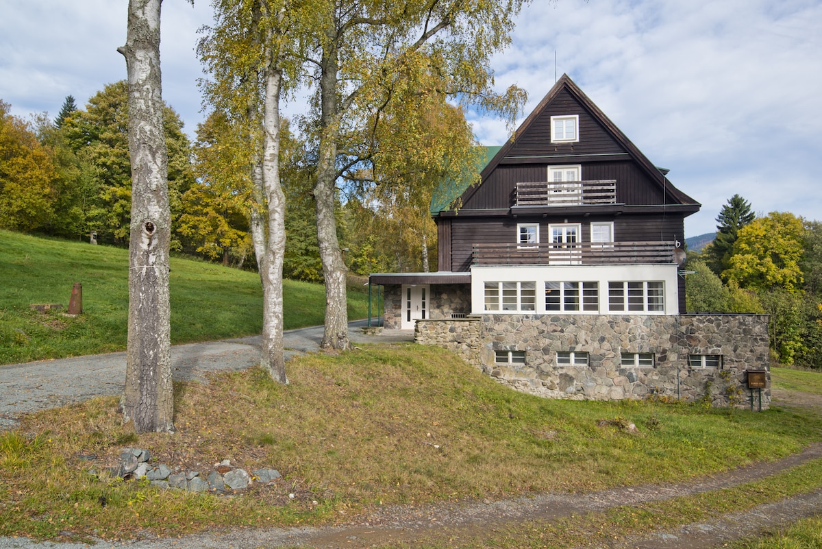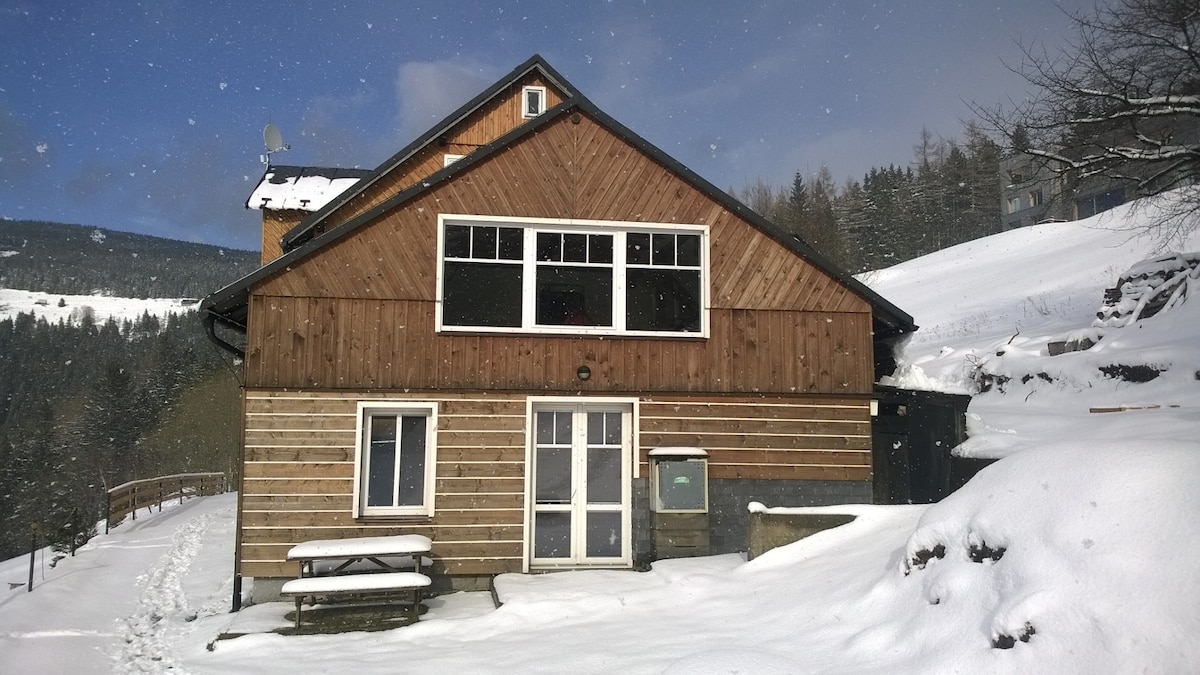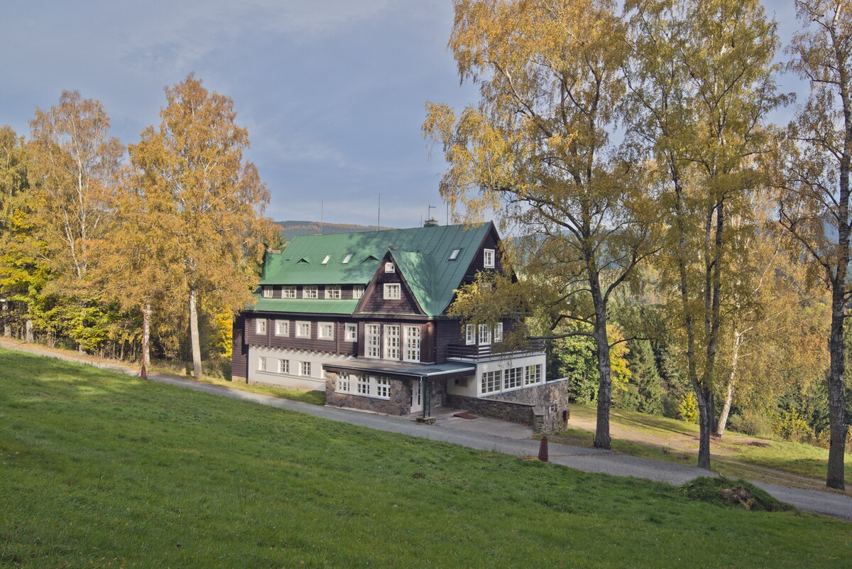 Classic chalet Orlík - accommodation Giant Mountains, Pec under the snowshoe is located in the picturesque and peaceful surroundings of the Giant Mountains National Park - about 400m center of Pec pod Sněžkou. Chata Orlík is located on a northern slope with a unique view of Studniční hora and wide surroundings. 이 위치는 겨울에는 최상의 눈 상태를, 여름에는 늦은 저녁까지 햇빛을 보장합니다.