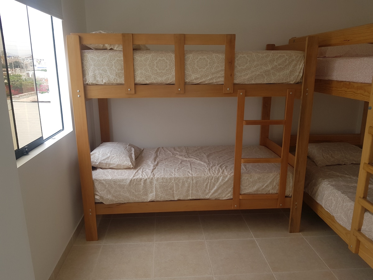 Moderno departamento a 6 cuadras de playa Blanca y Club náutico de P. Hermosa,con lindos acabados de lujo,a 40 minutos de Miraflores, 4to piso, buena vista, totalmente amoblado, cuenta con cochera y ascensor, fácil acceso directo a la playa. 2 habitaciones cómodas,2 baños,agua caliente,2 tv smart,cable, también cuenta con cocina(microonda,air frye,refrigeradora,muebles,barra etc) totalmente equipado balcon y terraza con parrilla. Un lugar para pasarla muy bien entre amigos,parejas o familiares.