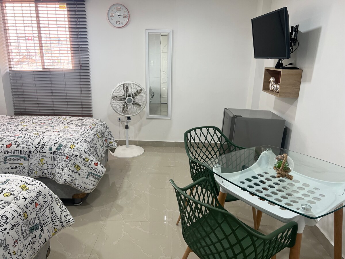 아름다운 럭셔리 아파트 401은 칼리의 역사적인 중심지에 위치하고 있으며, 침실 2개에 각각 1.40m, 1.60m 침대, 스마트 TV, 선풍기, 거실의 사교 욕실, 시간 제한 없는 독립 출입, 숙소 출입문에 전자 잠금 장치가 있습니다. 추가 비용으로 조식 서비스를 제공합니다. 이 서비스는 전적으로 선택 사항이며 숙박 기간 동안 미리 요청하실 수 있습니다. 하루를 시작하기에 이상적입니다.
