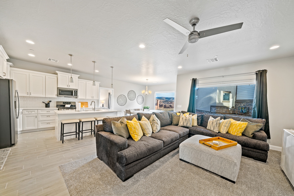 -자이언에서 20마일 거리에 있습니다! 킹사이즈 침대 3개, 풀/퀸과 트윈 침대가 있는 이층 침대 1개, 트윈 침대 3개가 있는 이층 침대 1개. 성인 6 ~ 7명 + 어린이 4 ~ 5명, 침대 숙소를 읽어주세요. -완비된 주방! 나만의 주방에 있는 모든 것이 있습니다. -피클볼과 비볼 코트. -유수풀과 스플래시 패드가 있는 현장의 거대한 수영장, 온수 욕조, 헬스장, 게임룸 및 외부 그릴 공간. -뒤쪽 파티오에 있는 나만의 그릴. 화덕이 있는 위층과 아래층 파티오의 좌석 공간. - 대형 거실 2개 -세탁기/건조기 즐기러 오세요!