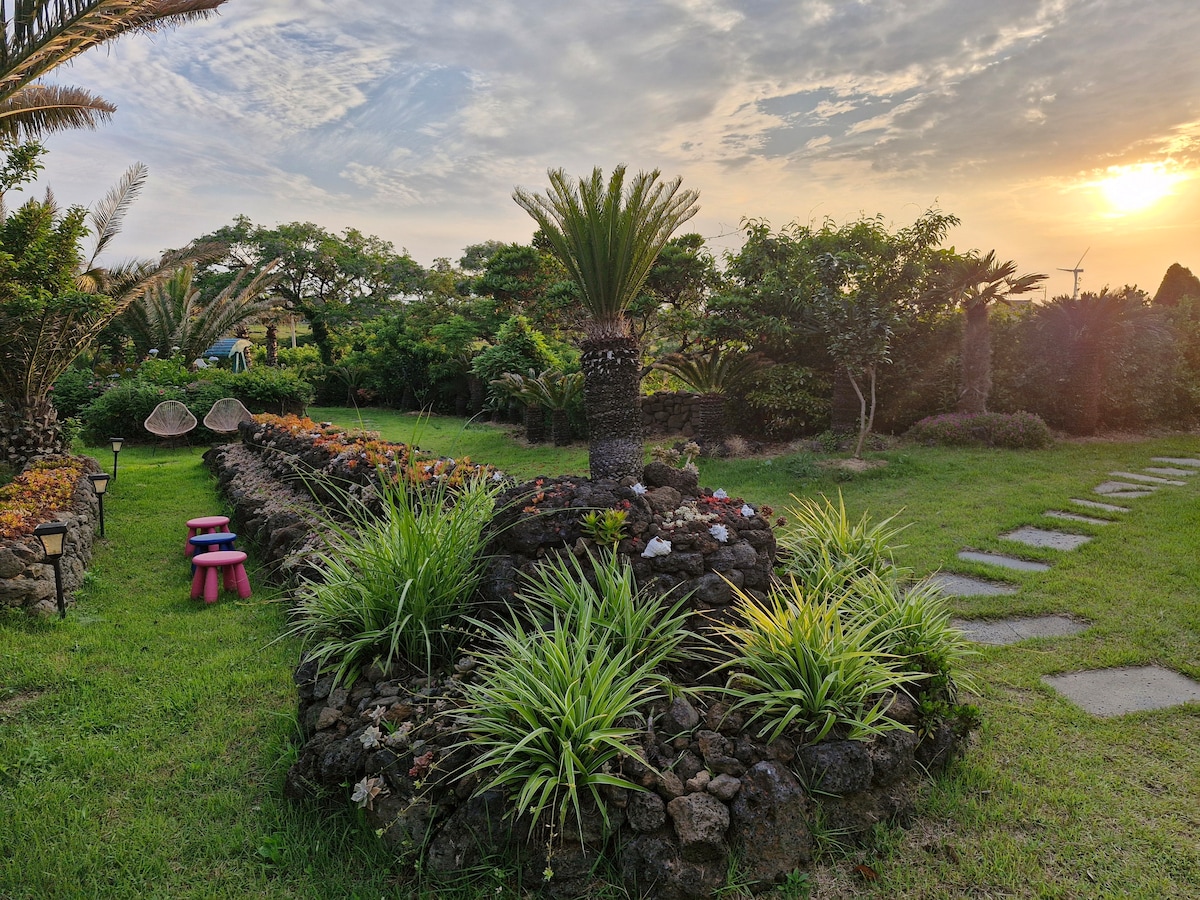 제주노을채 2~5인독채.유럽감성.야외미온수풀.바베큐장.실내대형자쿠지.하나로마트자차1분