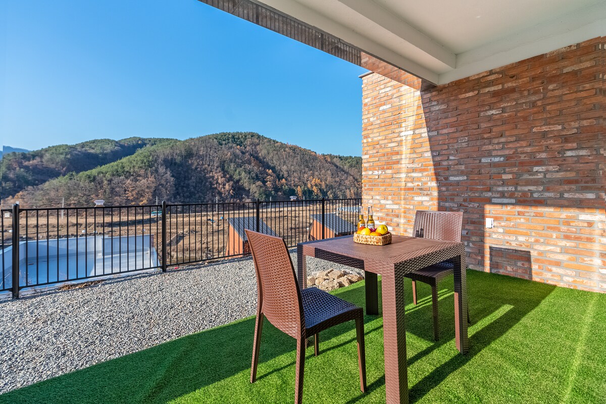 [수한예]B *테라스 단독바베큐 *룸2 *퀀침대3 *엔틱스타일