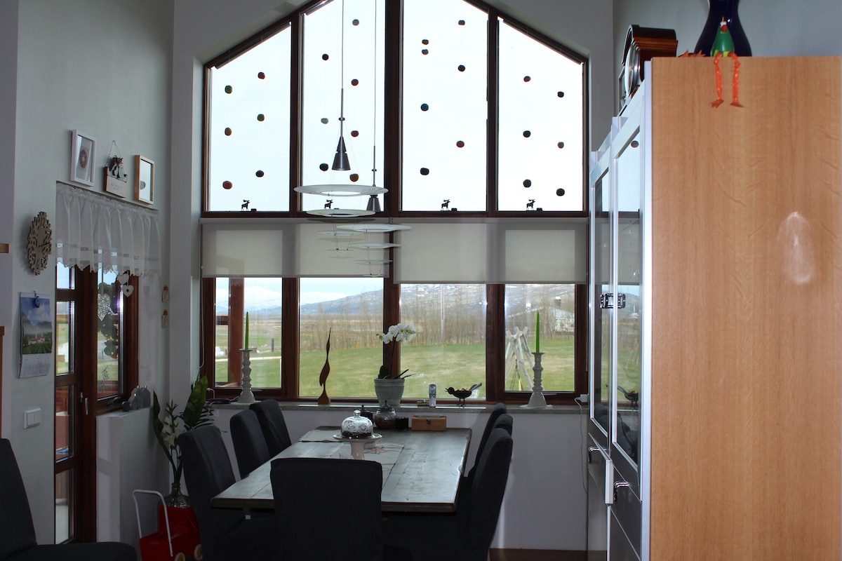 My property is beautiful house in the country side with a great mountain view and as well a view over the ocean. This is a home stay, I live in the house with my husband. I am renting out four rooms. Location is very close to Akureyri (9 km) and good for a day trips f.x. to Mรฝvatn, Dettifoss, and Hรบsavรญk. In the neigbourhood there is a golf-course, swimming pool, horse rental, hiking trails and vegan diner. You can have access to kitchen for light meals and heat something in the oven.