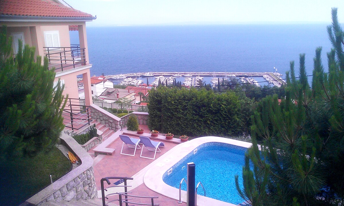 스튜디오는 가족 주택의 1층에 위치하고 있으며 바다를 향해 있습니다. 메인 (침실)과 넓은 발코니에서 콰르네르 만의 전망을 감상할 수 있습니다. 스튜디오는 커플에게 이상적이지만 한 자녀를 둔 커플도 수용할 수 있습니다. 집은 조용한 곳에 위치하고 있어 휴가를 보내기에 이상적입니다. 호스트는 게스트를 맞이하고 작별하며 지속적으로 서비스를 제공합니다. 게스트는 정원 시설도 이용할 수 있습니다. 상점, 우체국, 약국, 미용실, 버스 정류장이 도보로 10-15분 거리에 있습니다.