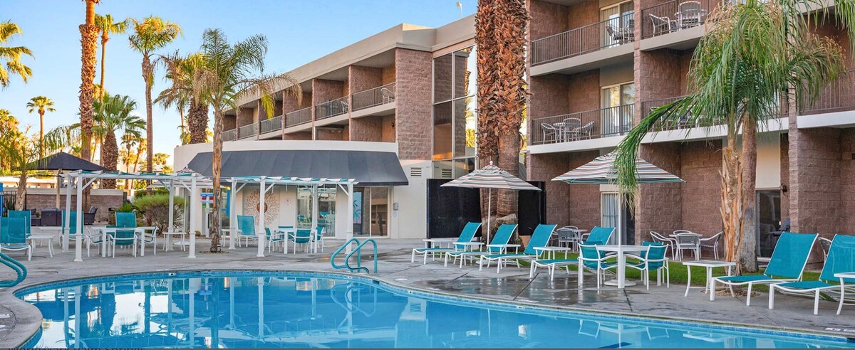 기발하고 밝고 쾌적한 미드 센추리 방갈로에서 최고의 팜스프링스 판타지를 즐겨보세요. 유서 깊은 오코티요 로지에 위치한 저희 숙소는 서쪽으로 향하는 넓은 전용 파티오를 갖춘 몇 안 되는 독점 방갈로 스위트 중 하나입니다. 현대적인 편의시설을 즐기고 팜스프링스의 다채로운 역사를 느낄 수 있는 많은 스타일을 감상해보세요. 황금빛 일출을 감상하며 모닝 커피를 마시거나 샌 재신토 산맥이 내려다보이는 마법 같은 일몰을 경험해보세요. 미드 센추리 양식의 보석을 즐기실 수 있습니다!