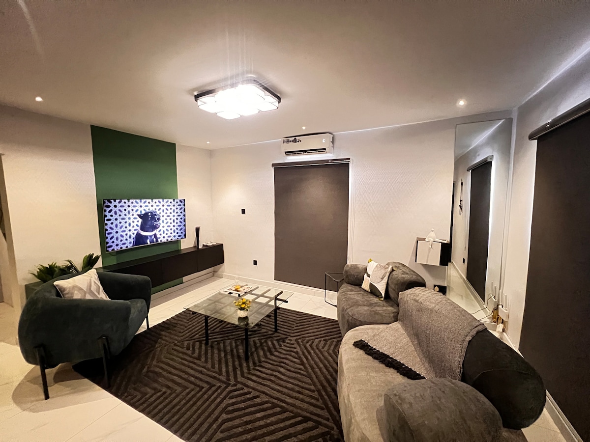 Elite 1BR: Near Airport,PS5, 24/7 Power & Wi-Fi
