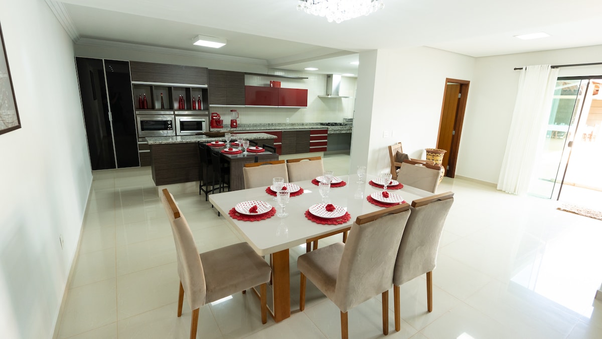 Acomodação para até 12 pessoas. ATENÇÃO CHECK-IN a partir das 15:00 hrs. CHECK-OUT 12:00 hrs. Área Externa: • PISCINA AQUECIDA ( Espaço Adulto 5x3x1.40 tem degraus e Infantil 2x2x0.60 ) • CHURRASQUEIRA com a opção de GRILL ELETRICO • COZINHA EXTERNA • BANHEIRO E LAVABO • DUCHA • MESA DE SINUCA • CERVEJEIRA (Freezer para Cerveja) • ESPAÇO LAZER • TV • REDES DE DESCANSO GARAGEM para 02 carros. Não possuímos carregador para carro elétrico e nem autorizamos carregar na residência.
