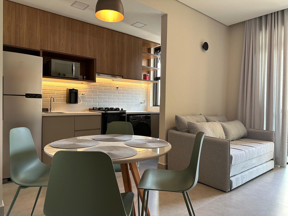 고급스러운 로프트, 45㎡, 에어컨, 4인용 테이블 및 벤치, 완비된 주방, 세탁기, 네스프레소 머신 및 기타 편의시설. 퀸사이즈 침대, 1 소파 베드, 55인치 스마트 TV, 와이파이 및 인터넷이 있는 매우 넓은 객실. 아름다운 전망! 공용 외부 공간: 헬스장, 세탁, 온수 수영장, 자쿠지 및 사우나. 다이아몬드, 호스피탈 근처의 특권 위치. 마테르데이 병원, 브라질리아 중앙 시장, 슈퍼노소 등 1 주차 공간 및 24시간 경비원 집처럼 편안한 편의시설!
