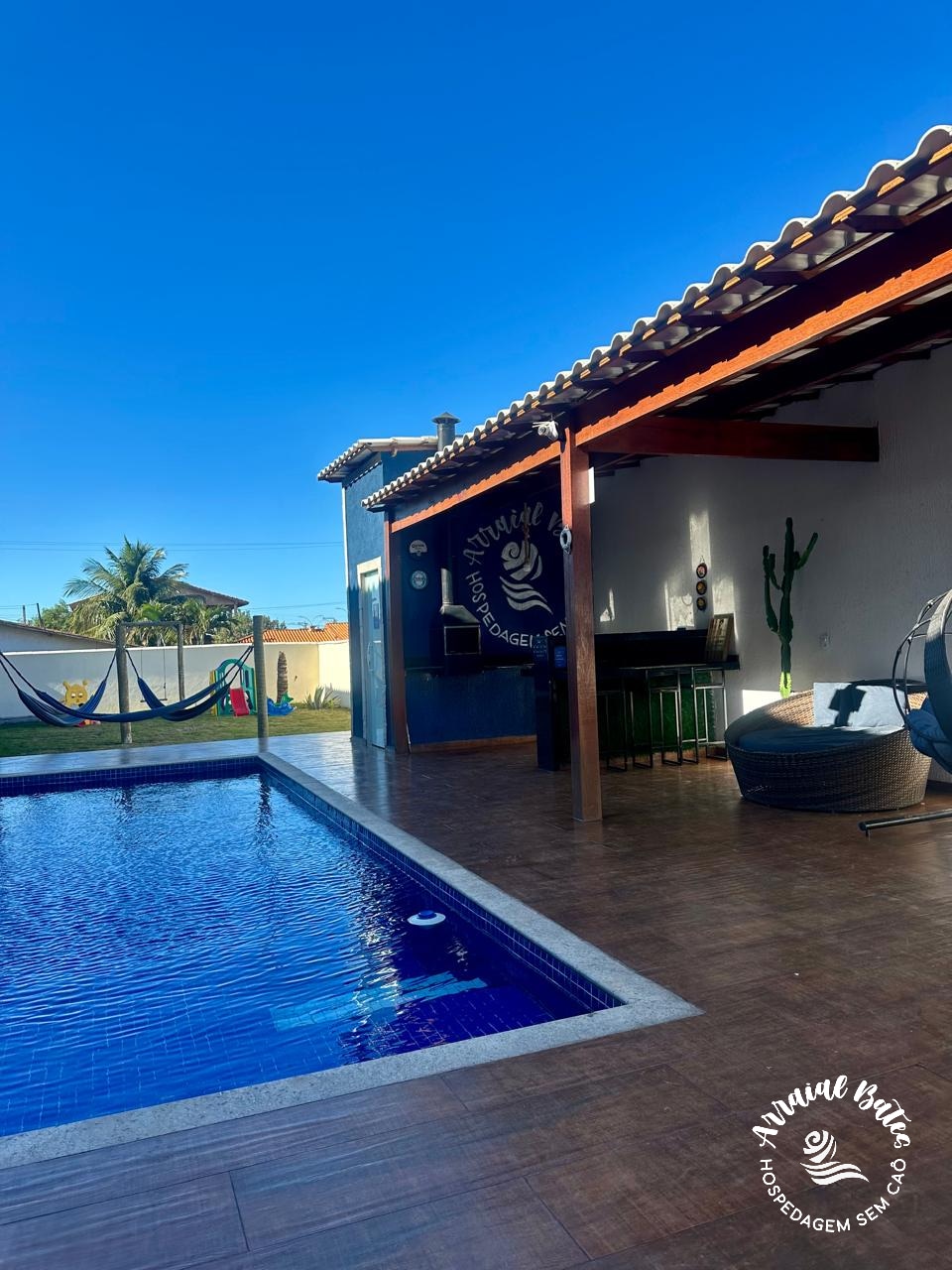 숙소에는 침실이 4개 있으며, 그 중 3개는 에어컨이 설치되어 있습니다. 자동 게이트, 차량 3대 주차 공간, 6미터 수영장, 어린이 동반자 전용 구역, 지붕 있는 공간, 바비큐 시설, 냉장 음료수 제조를 위한 냉장대 및 싱크대 2개, 당구대, 2개의 외부 욕실(여성 및 남성), 2개의 내부 욕실, 휴식을 위한 해먹 2개가 있습니다. 카보프리오에서 25km, 아라이알 두 카보에서 35km 거리에 있습니다.