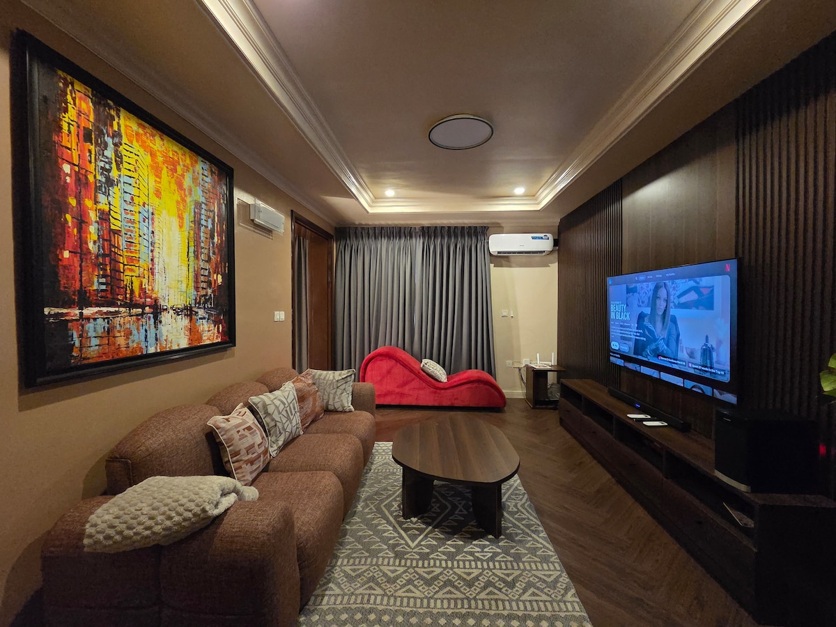 중심부에 위치한 세련된 24시간 전원 및 와이파이가 제공되는 아파트에서 즐거운 시간을 보내세요. 쇼핑몰, 영화관, 레스토랑, 훌륭한 나이트라이프가 모두 차로 10분 거리에 있습니다. 침실 2개는 전용 욕실이 있으며, TV가 있습니다. 27인치 데스크톱 모니터, 인체공학적 의자, 작업 중 원하는 높이로 설정할 수 있는 전기 테이블이 완비된 훌륭한 업무 공간도 마련되어 있습니다. 휴가와 원격 장기 숙박에 안성맞춤입니다. #YourplaceinLagos