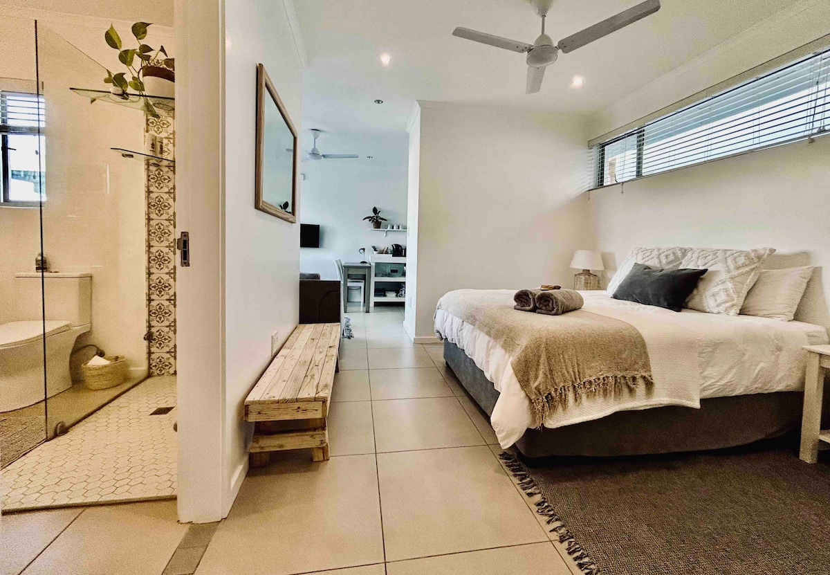 Comfortable 1-bedroom suite with its own entrance. Only 300m from Salt Rock main beach. The unit is serviced on request and comes with complimentary WIFi, Netflix, coffee & tea! Perfect for a couple or the business traveller! We have a dedicated workspace with a sea view for you. Breakfast can be enjoyed at a number of nearby restaurants. Nearby (6 minute drive) Ballito offers wonderful options for lunches and dinners.